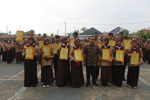 Kepala SMK Yadika Jambi Bpk. Didi Heriyanto,S.P,.S.Pd menyerahkan Piagam Penegak Bantara kepada siswa-siswi SMK Yadika Jambi yang menjadi anggota pramuka aktif. Pada kesempatan ini juga Kepala SMK Yadika Jambi menyerahkan hadiah kepada kelas yang menaang pada kegiatan EXPO SMK 2023 kemarin.